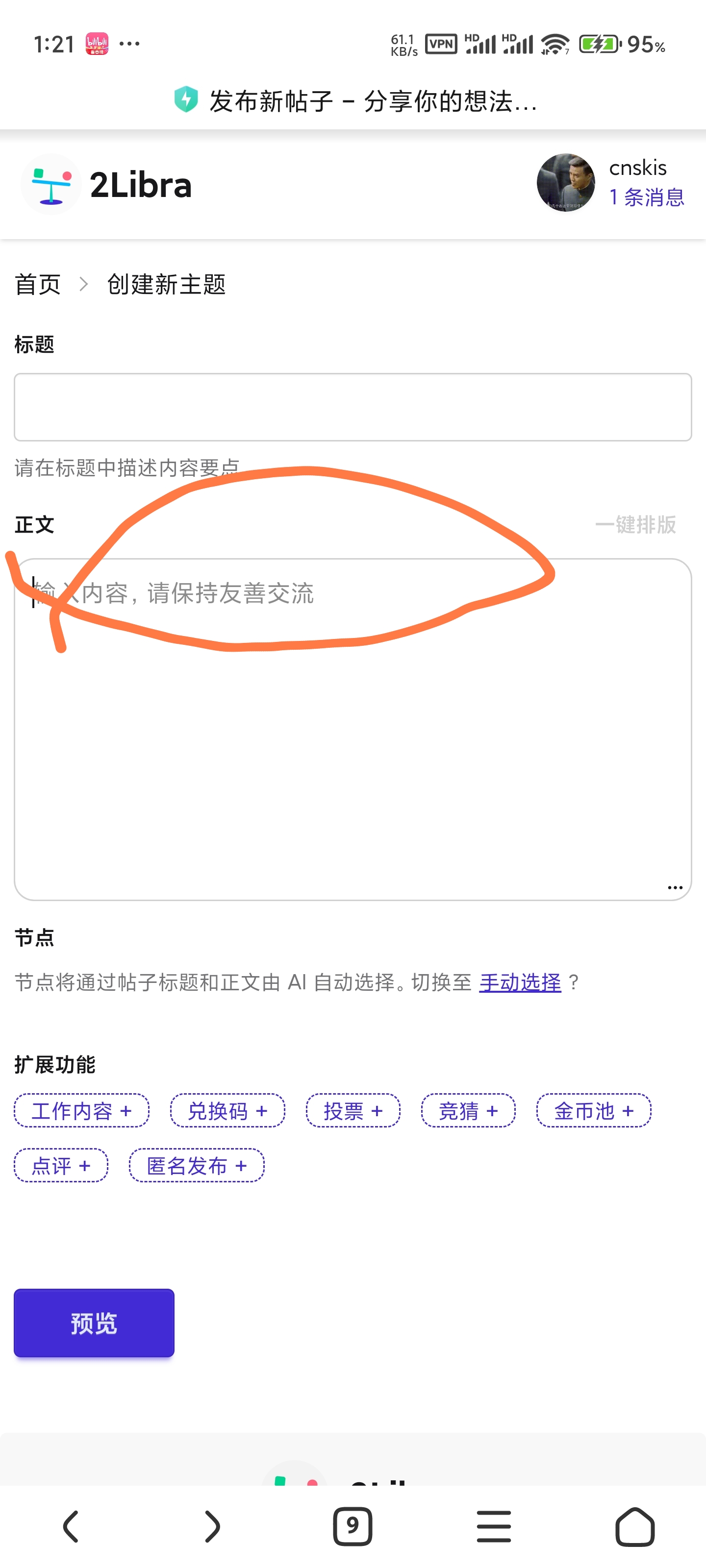 选择帖子更为合适的节点。合适的节点能让你的帖子获得更好的展示。