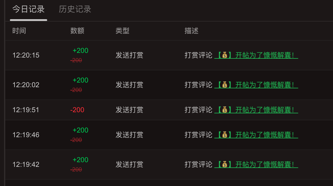 @Jimmy 如果戴上捣蛋鬼徽章,给人打赏时反转了,那流水是正还是负?反转会影响拿慷慨解囊徽章吗?