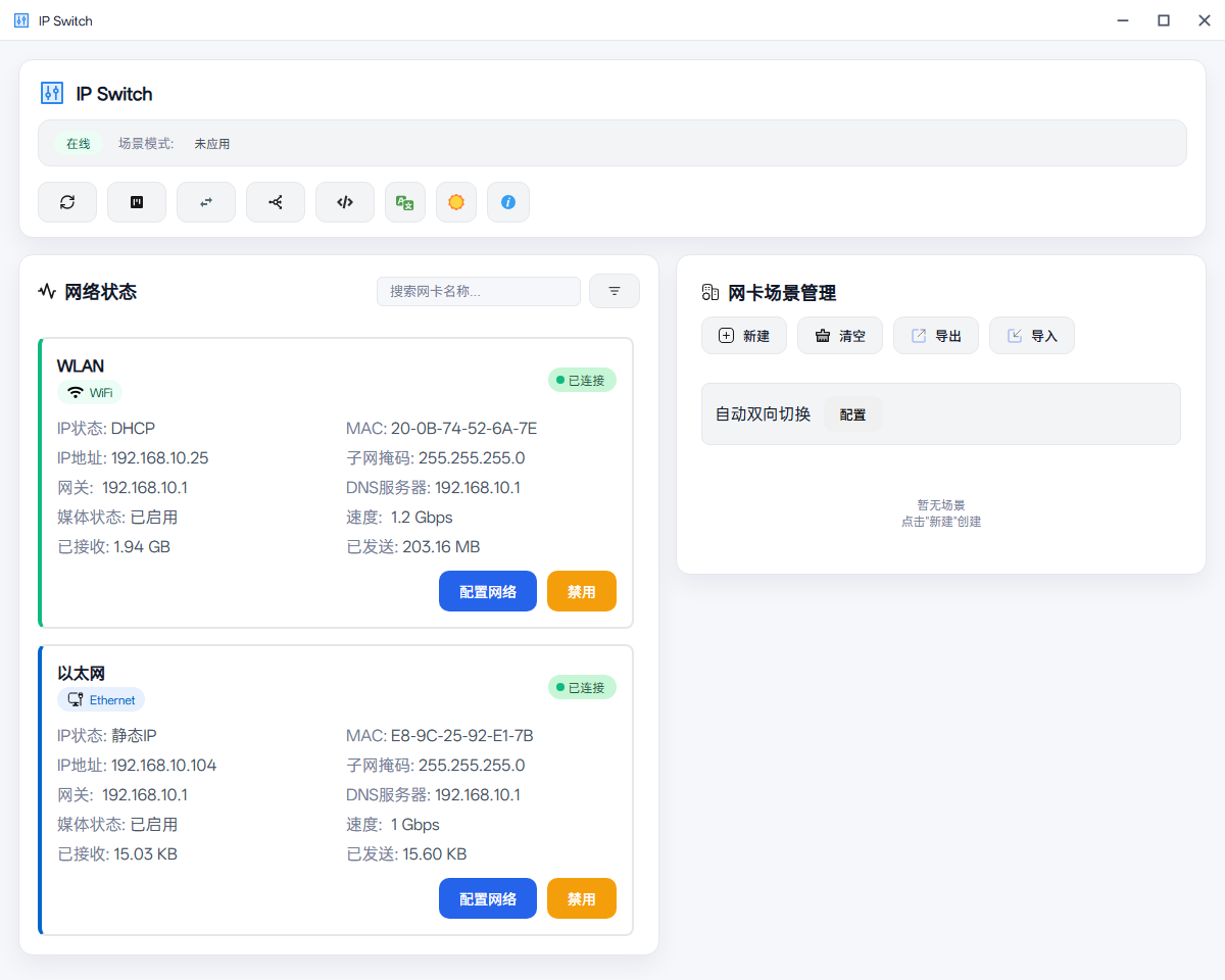 下载地址 https://github.com/hoochanlon/Ip-Switch/releases